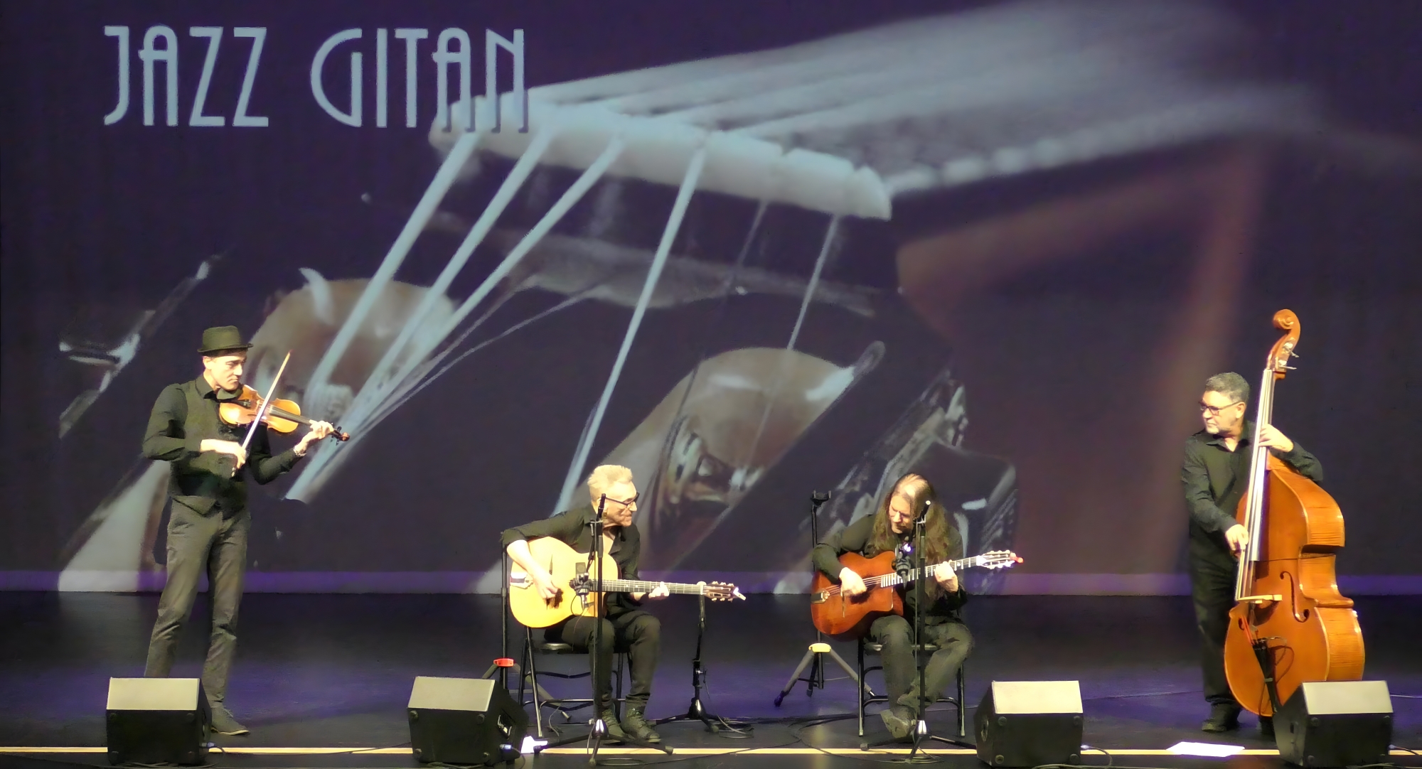 The all-acoustic ensemble Jazz Gitan (pronounced J'tawn) is high energy hot gypsy jazz. They perform a modern variant of 1930-1940’s Django Reinhardt-inspired music.